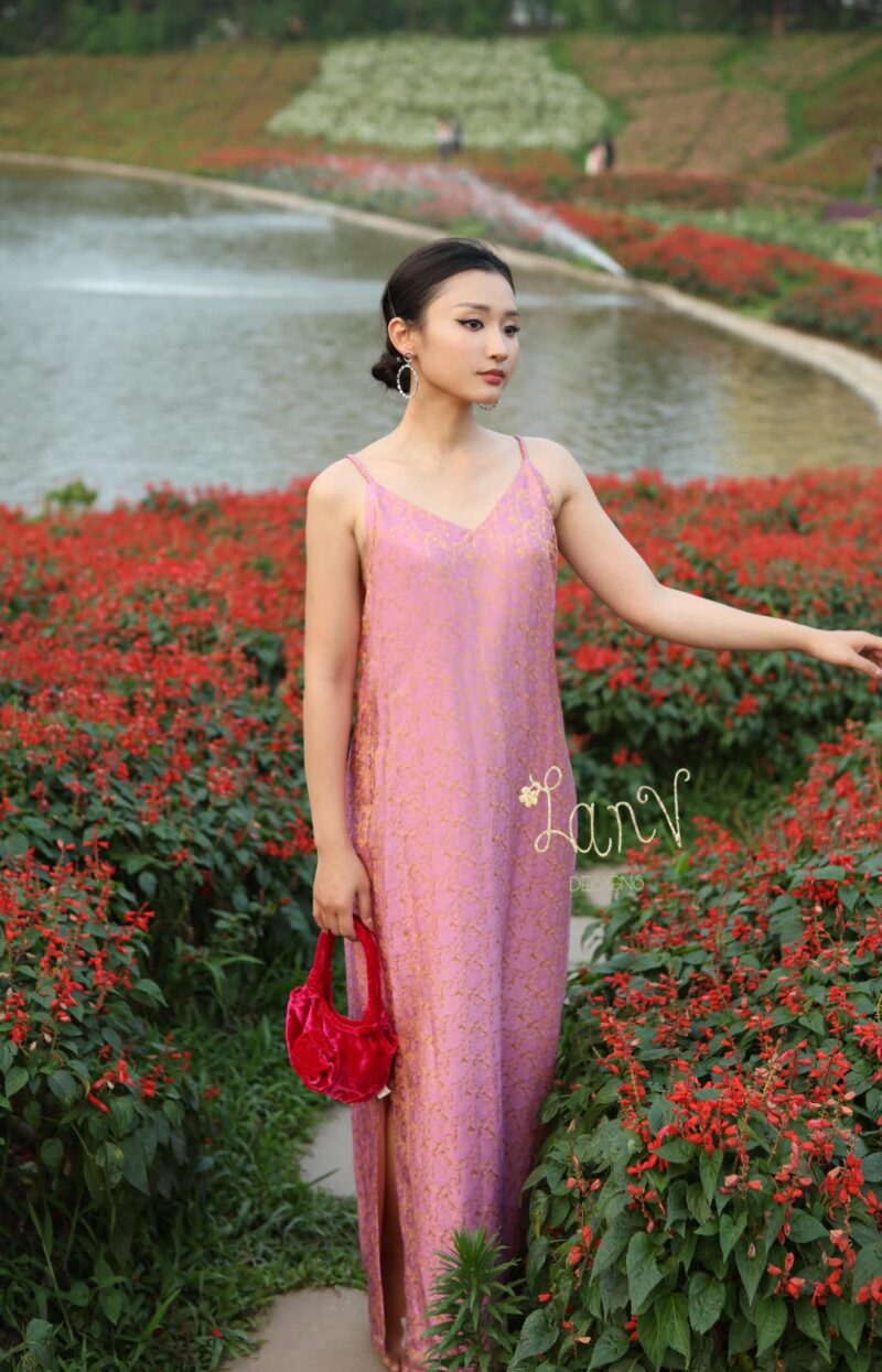 Váy lụa tơ tằm 2 dây dáng suông